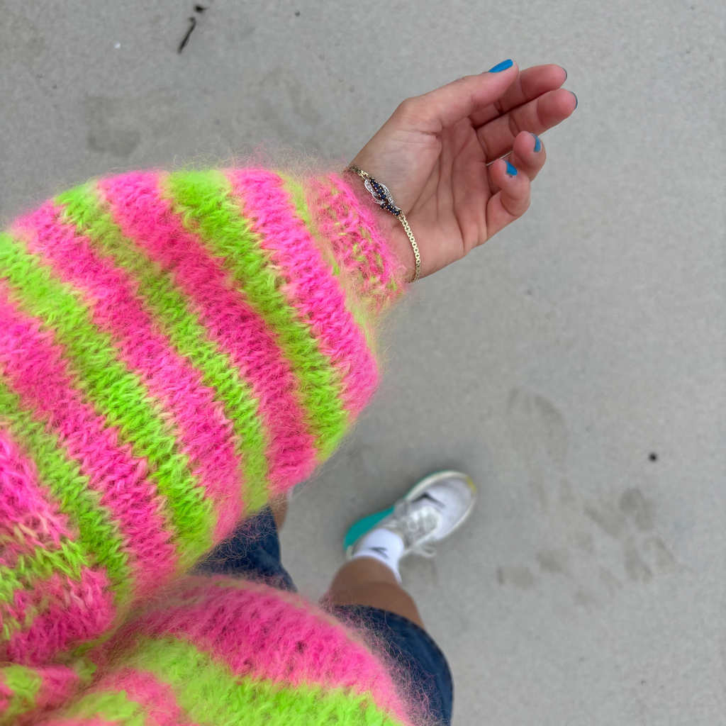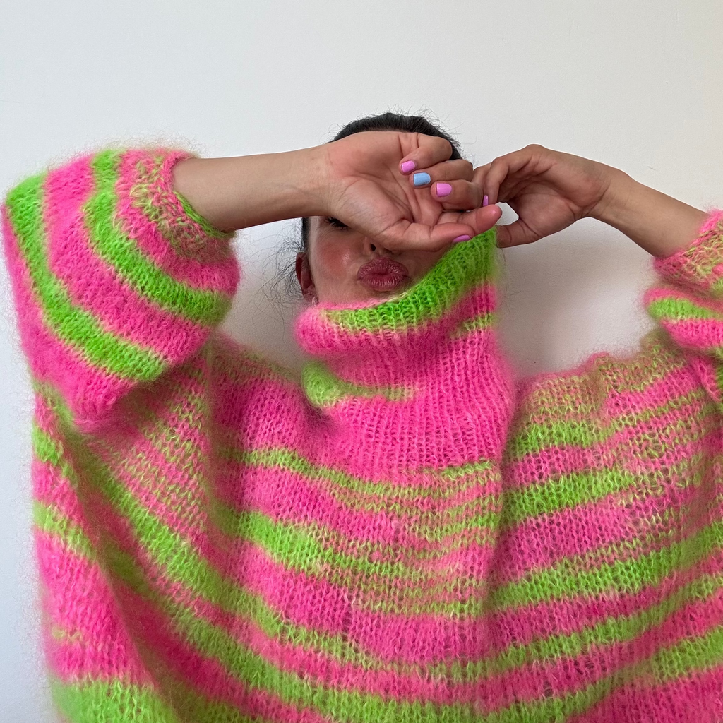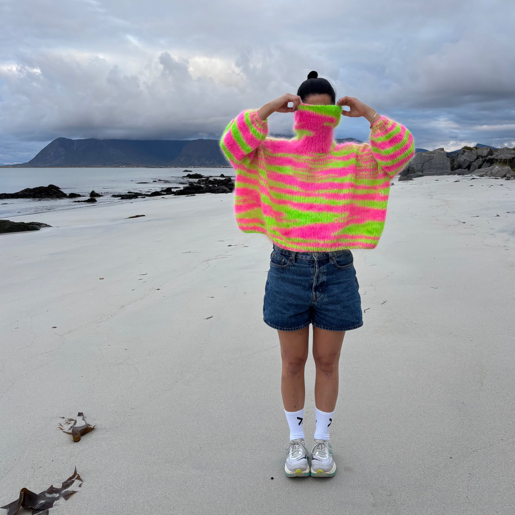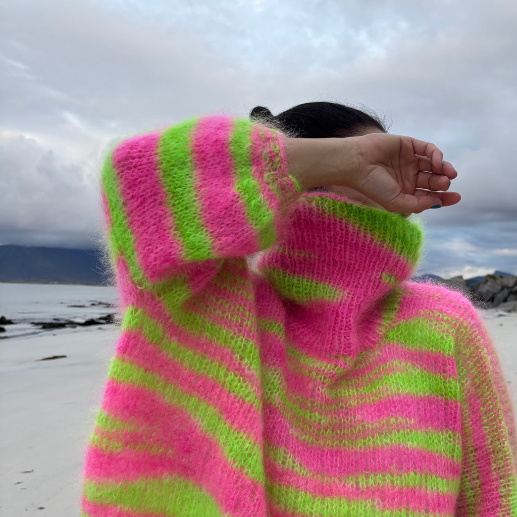 Håndfarget garn – fat mohair fra Strikkefeber